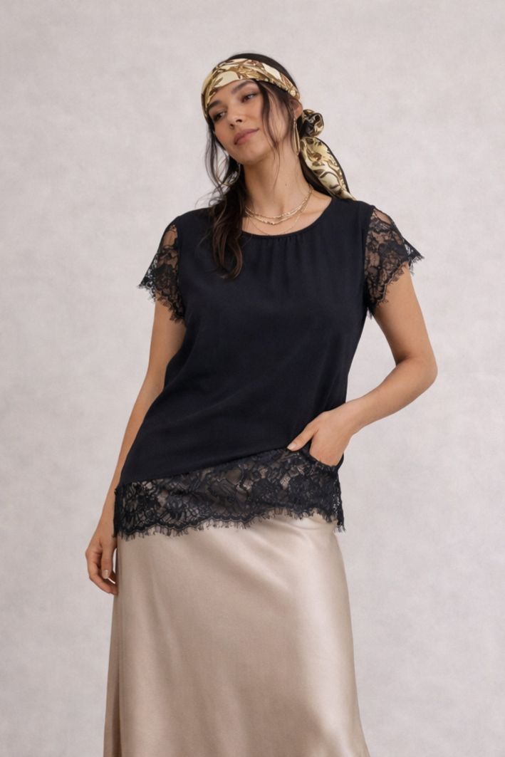 Maglia velata nera con pizzo Tg SMaglia velata nera con pizzo Tg S