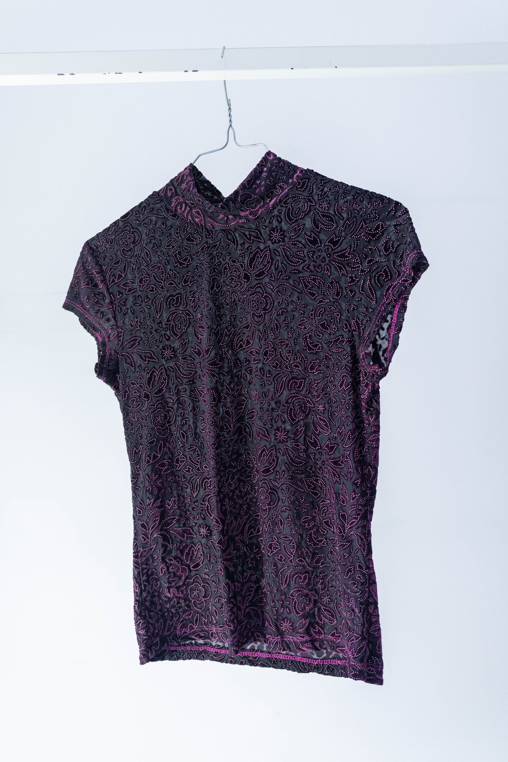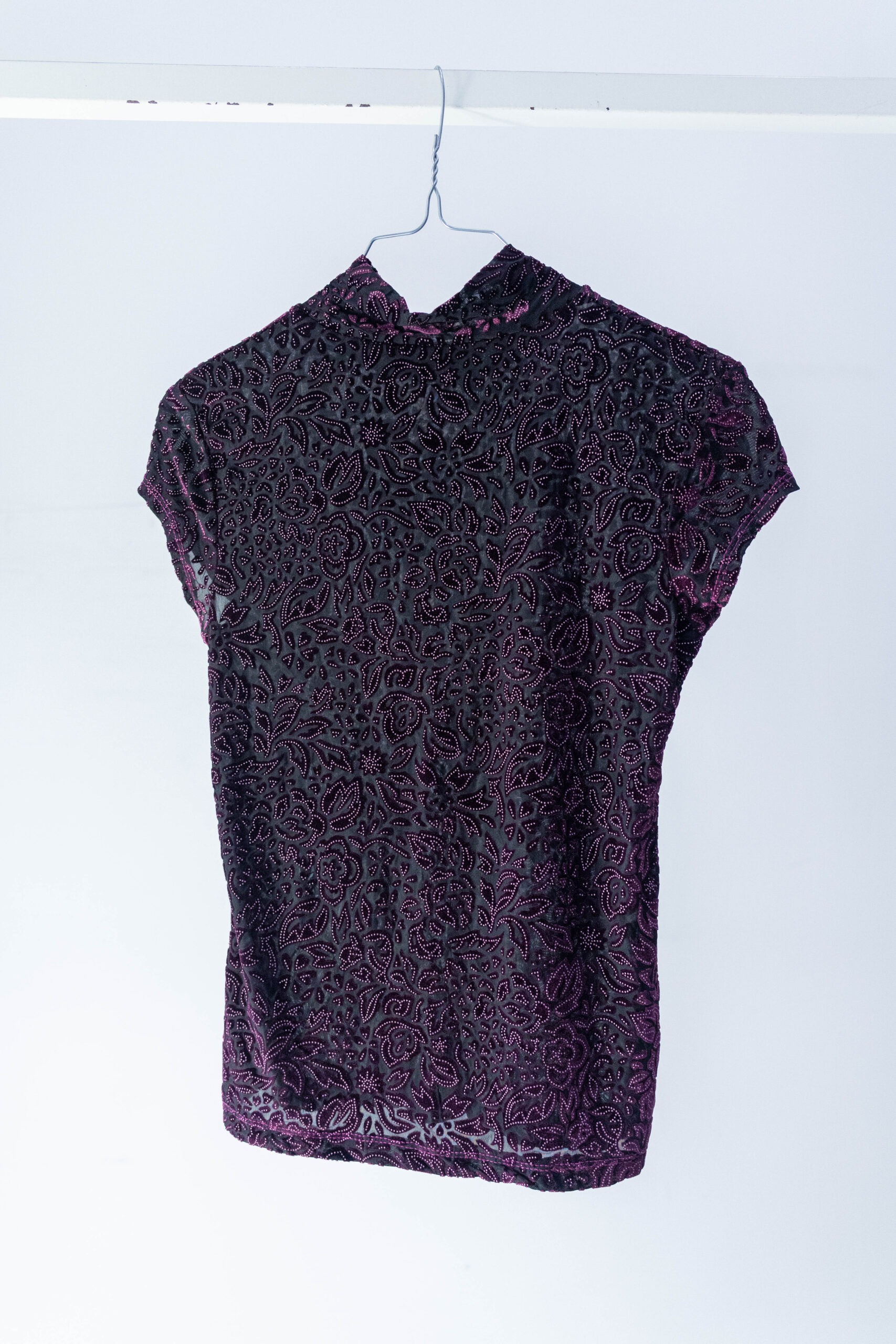 Top in velluto nero & viola Tg S/MTop in velluto nero & viola Tg S/M