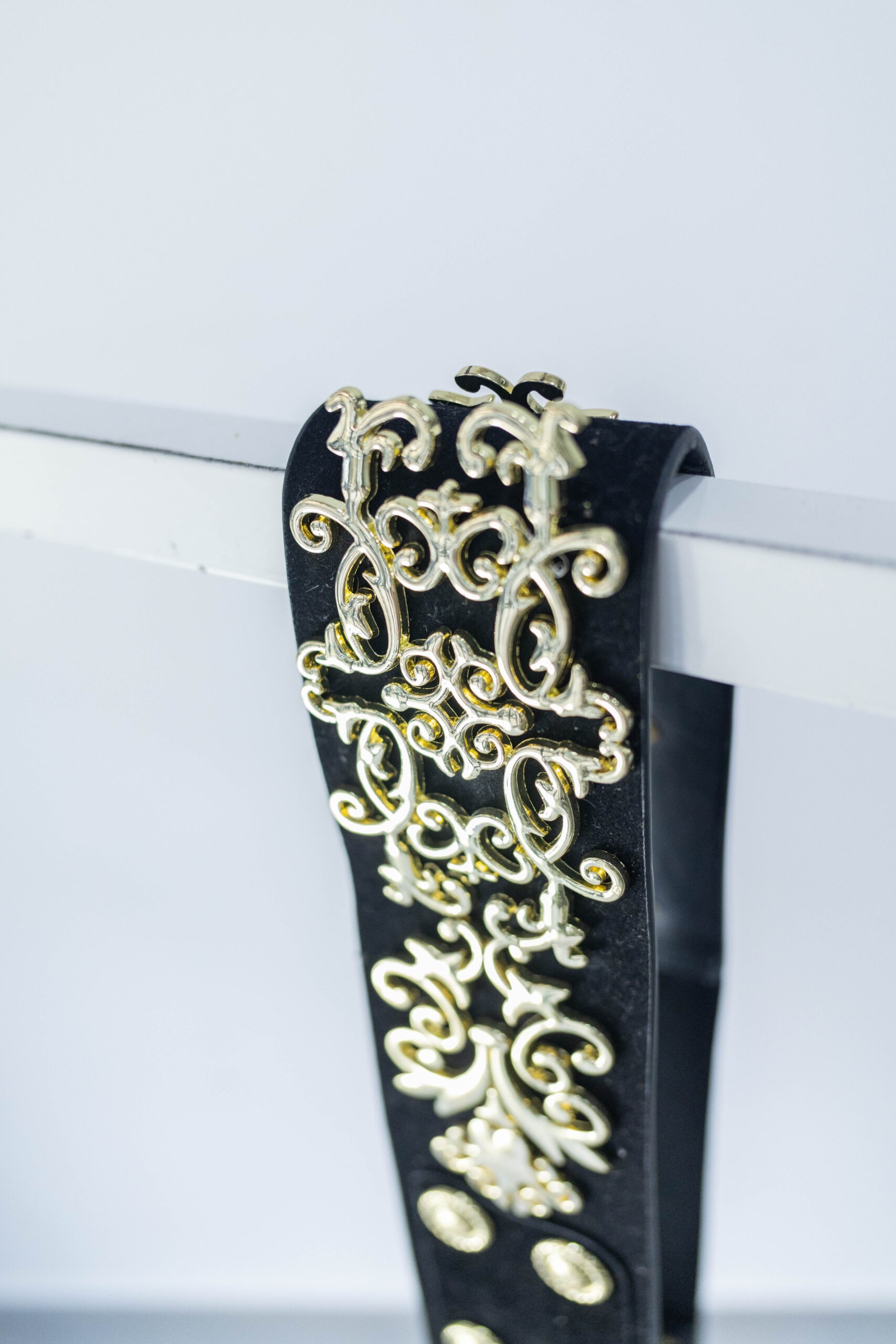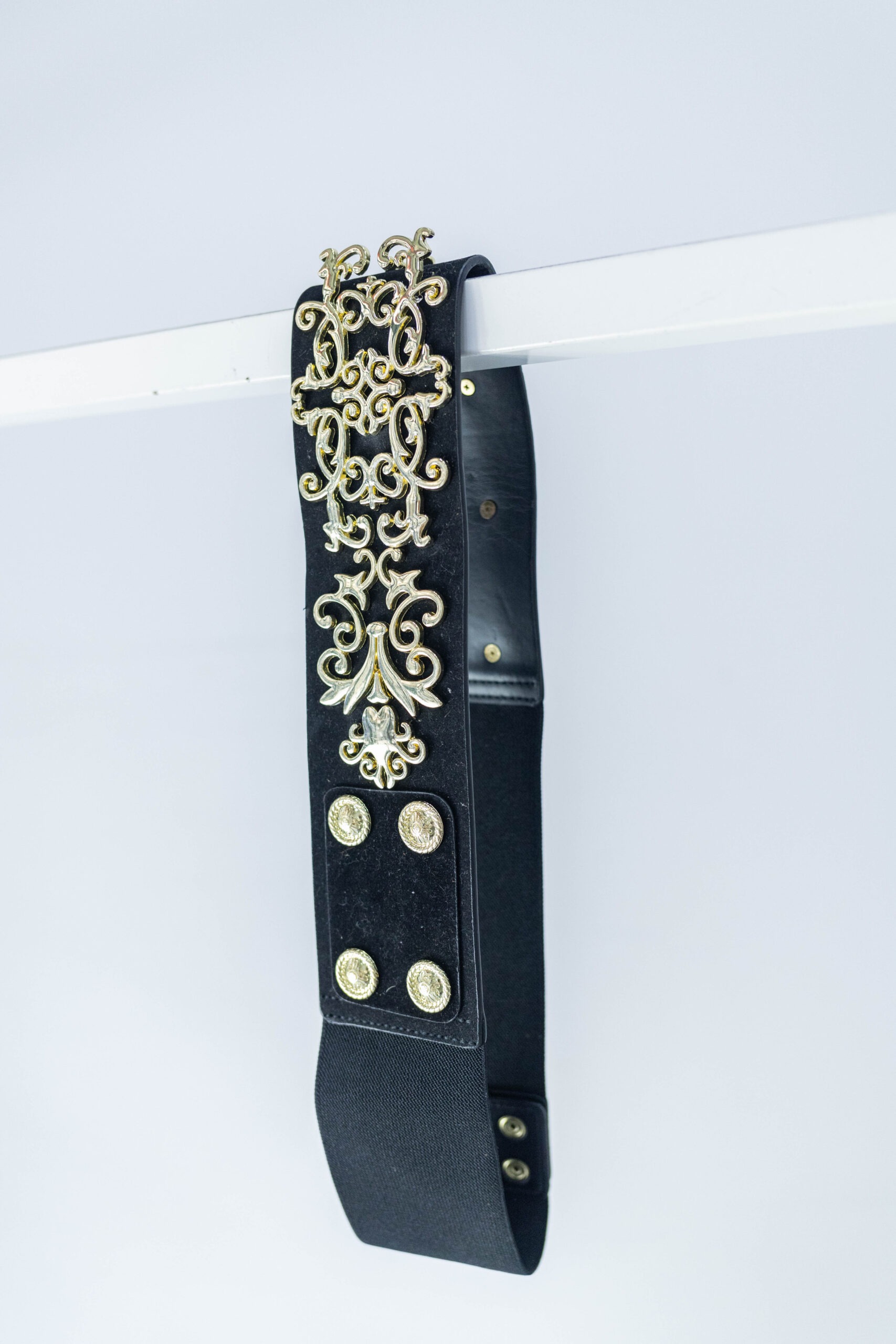 Cintura nera elasticizzata con dettagli dorati